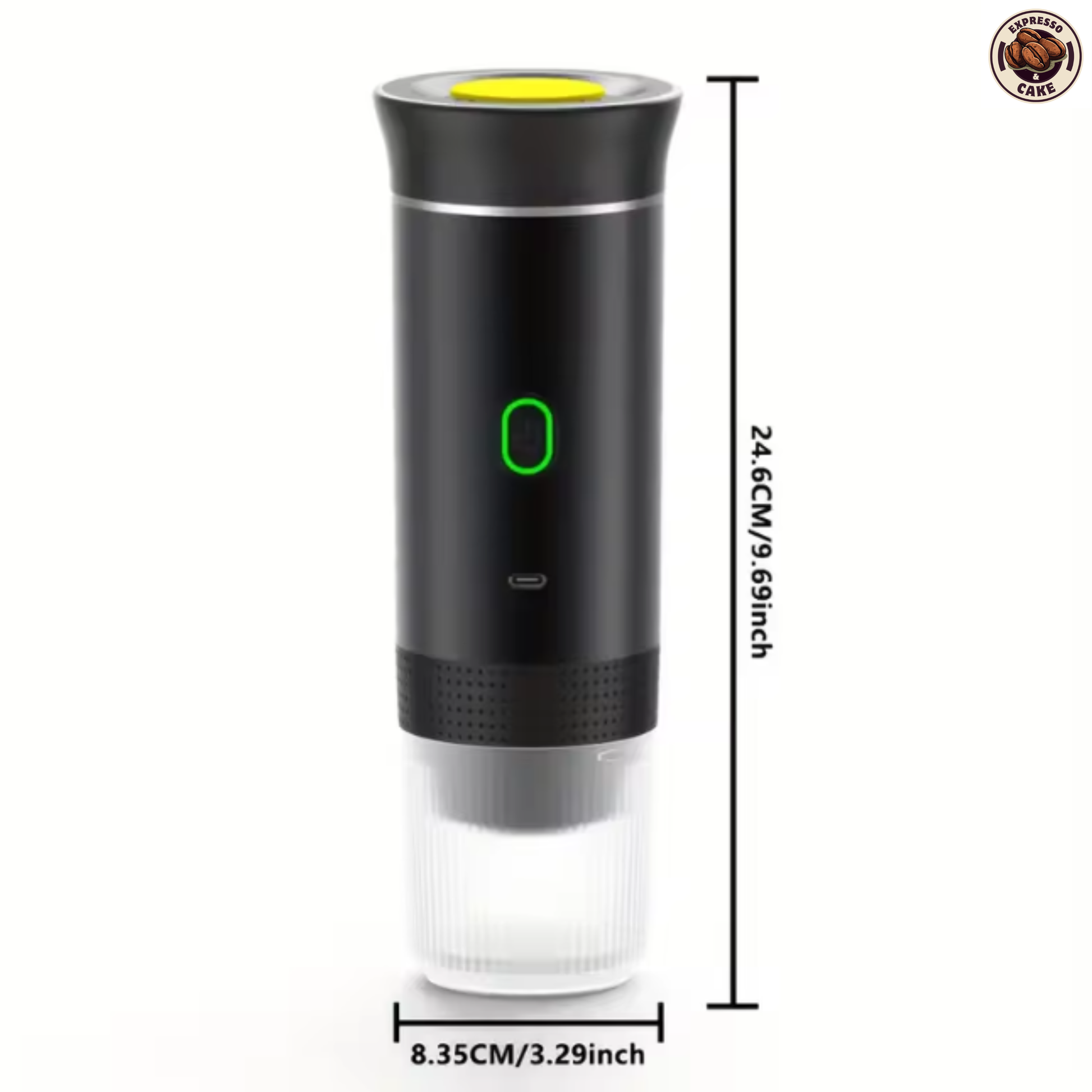 Con unas dimensiones de 8.35 × 24.6 cm, esta cafetera portátil es lo suficientemente pequeña para llevarla en tu mochila o bolso, sin ocupar mucho espacio y manteniendo un diseño elegante y funcional.